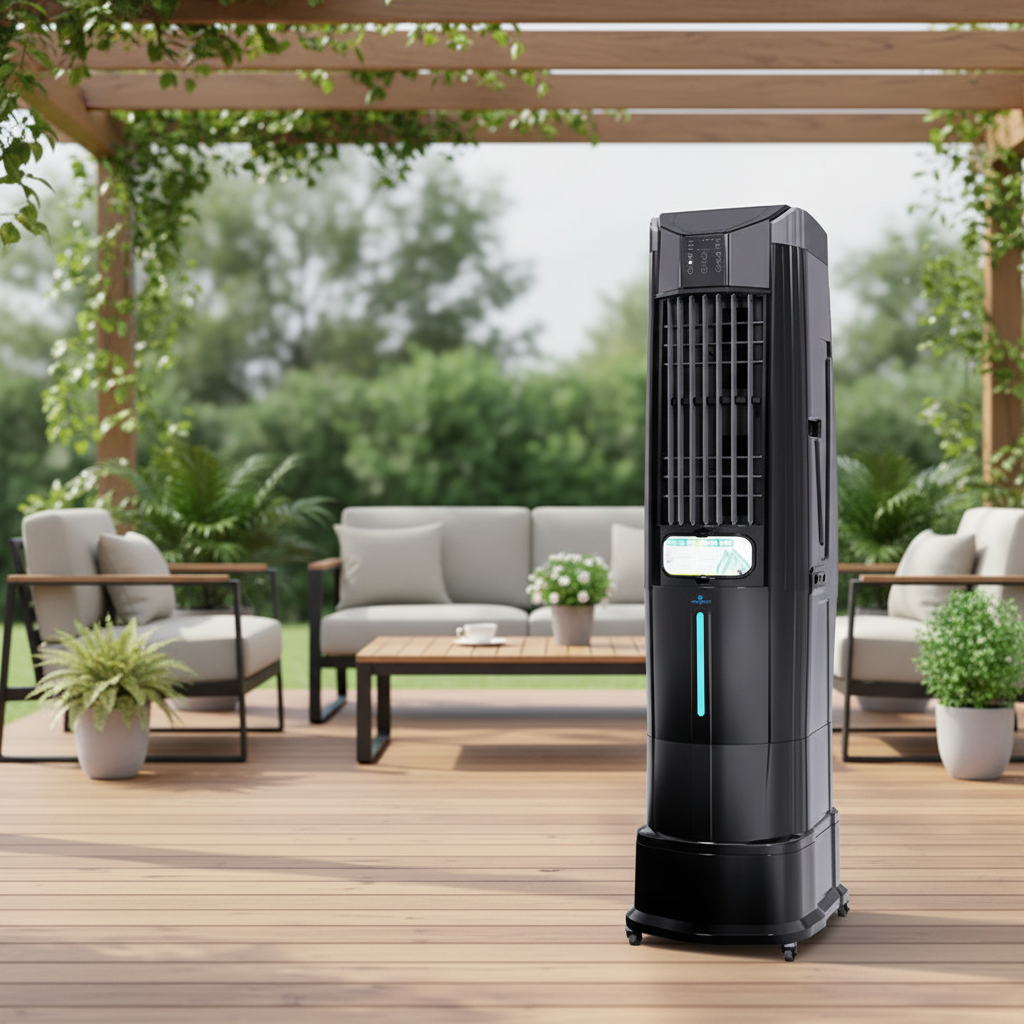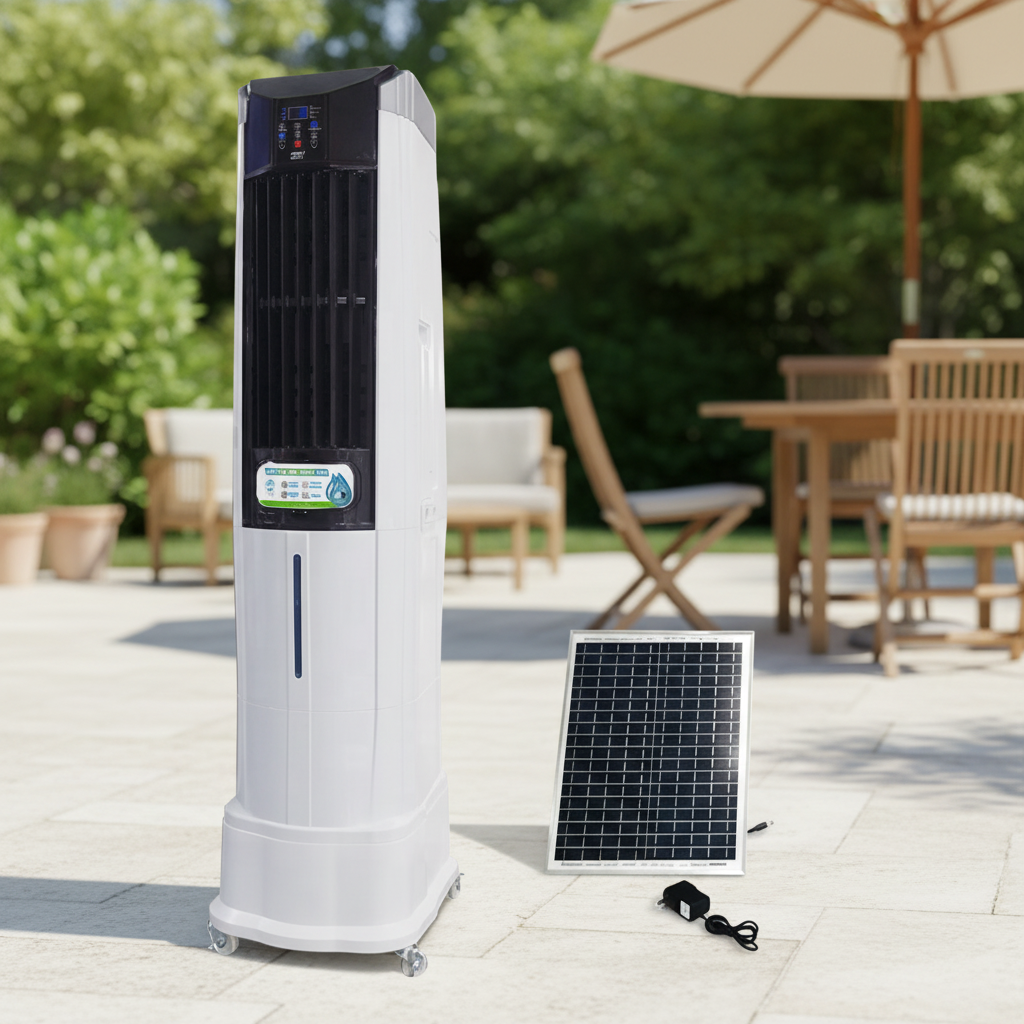 Its plug-and-play setup makes it easy to use anywhere. Simply place it in a sunny spot, connect the solar panel (if applicable), and it’s ready to go. Portable and flexible, it’s perfect for patios, bedrooms, garages, or any area needing reliable cooling.