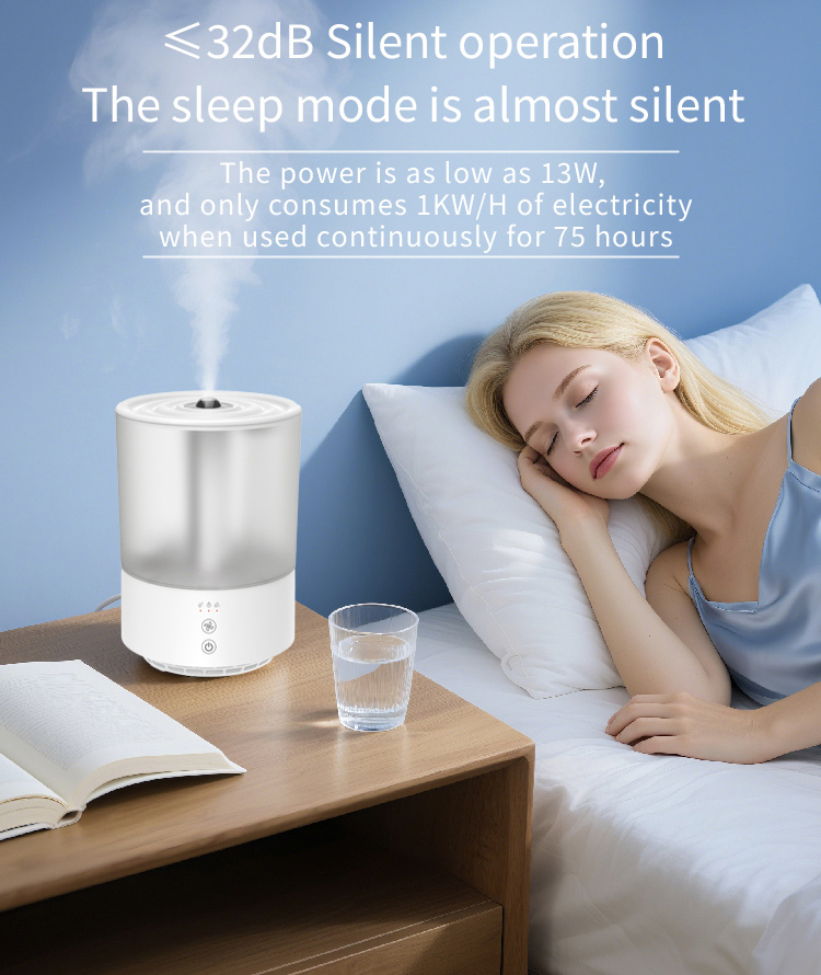 Experience peace even at night with its whisper-quiet performance—operating at less than 32 decibels, it’s virtually undetectable while you sleep. Powered by ultrasonic evaporation technology, it releases a fine, invisible mist that instantly boosts air humidity. The wide-angle nozzle ensures even distribution, quickly relieving dryness in bedrooms, living rooms, or offices.