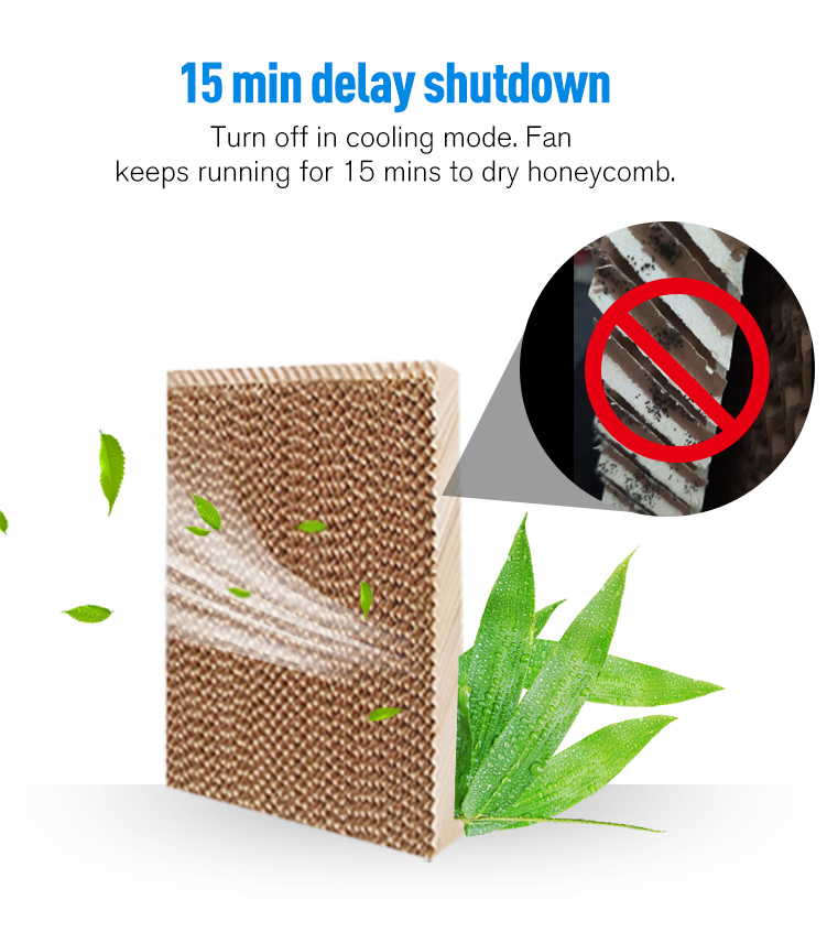 A standout innovation is the 15-minute delay shutdown function, which dries the cooling pad post-use to prevent mildew—a common issue in wet cooling systems. RBW also prioritizes safety with detachable power lines and fluorescent decorative rings for nighttime visibility. The brand refuses to compromise on materials, using only 100% virgin ABS plastic and copper motors for durability, energy efficiency, and quiet operation.