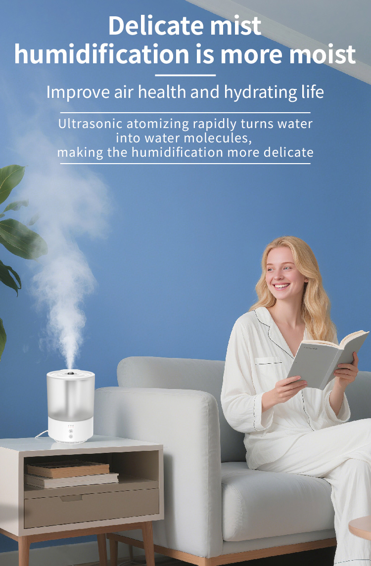 Our FS01F produces delicate mist while functioning, with Ultrasonic atomizing rapidly turns water into water molecules, making the humidification more delicate. When you use our humidifier, you can feel the delicate mist make the air moist and comfortable with no irritation at all.