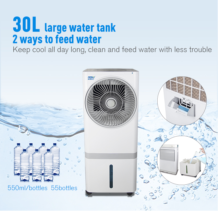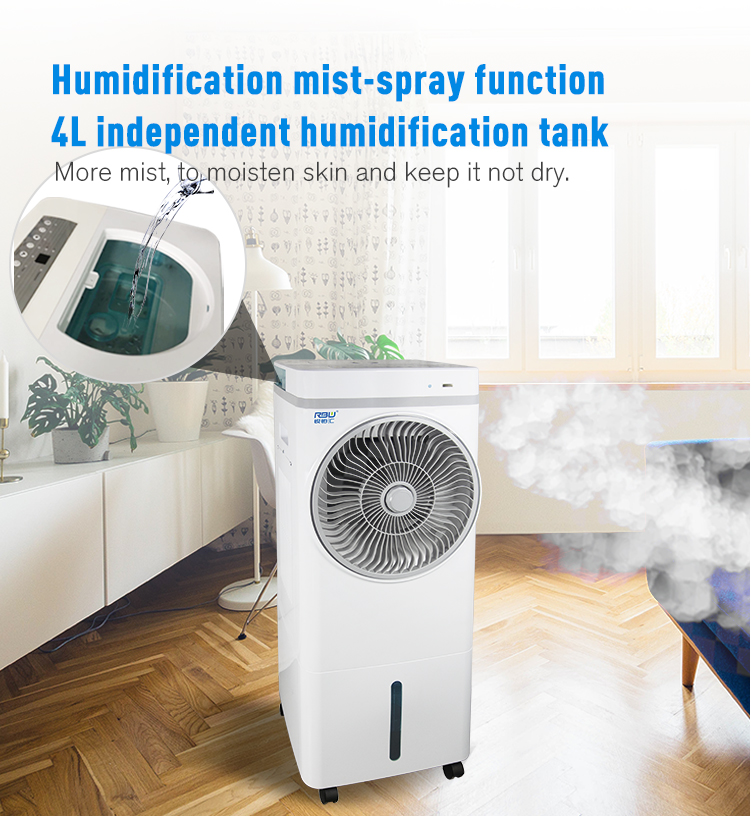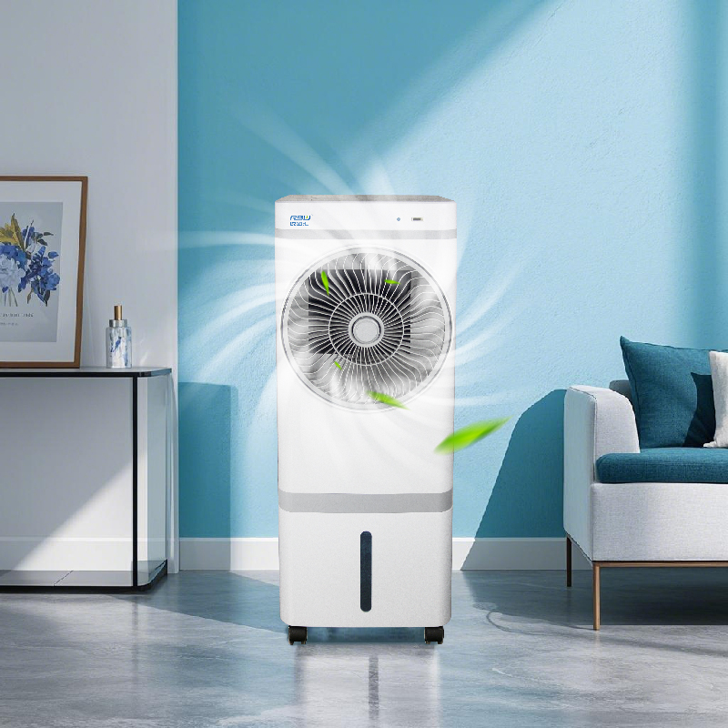 The biggest difference between this one and ordinary evaporative air coolers is that it combines "cooling" and "humidifying" in one unit. It has a large-capacity water tank system – 30L in the main body plus an additional 4L in the top compartment. After pouring in tap water, when the air passes through the honeycomb cooling pad, it not only lowers the temperature (by 5-8℃ compared to room temperature) but also blows out with fine moisture. Unlike air conditioners that "suck away moisture," this one actually acts like a "moisture supplement" for the air.