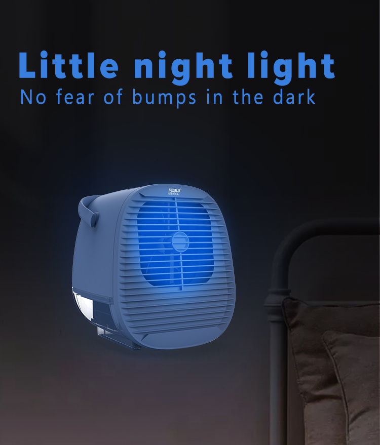 This mini desktop air cooler is equipped with a 1.2-liter water tank. It not only meets the needs of a full day’s use but also prevents long-term residual water in the tank after the deterioration of air pollution. It also features a 24-hour scheduled shutdown function, so you don’t have to worry about forgetting to turn it off. If there is no operation within 24 hours, the air cooler will shut down automatically. In addition, it offers an optional mist-spraying function; the soft mist it emits keeps your skin moisturized while preventing the indoor air from becoming too dry. It is also fitted with a small night light, which prevents you from bumping into things in the dark and allows you to move around conveniently even in a dimly lit room.