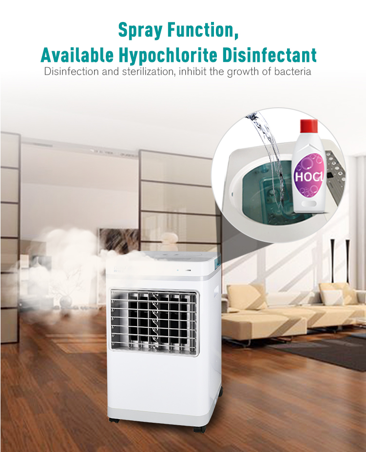Crafted from high-quality and durable materials, this air purifier incorporates brand-new ABS plastic. This material can extend the service life of the air purifier, ensuring that you can enjoy fresh and clean air for a long time. The evaporative cooling pad inside the air purifier is coated with nano-zinc. This component can not only decompose indoor formaldehyde and Total Volatile Organic Compounds (TVOC), but also eliminate odors from organic compounds as well as kill bacteria and mold. Equipped with a spray function and an ionizer function, it inhibits bacterial growth while supplying fresh and clean air. You can also add hypochlorite disinfectant to the purifier to enhance the bactericidal effect. Boasting excellent efficiency in removing PM2.5, the purifier can prevent harmful gases containing bacteria and viruses from entering people's lungs. It supports remote control via mobile phones. Simply download the "Smart Life" app, connect it to WiFi, and you can turn on the purifier 15 minutes before arriving home. Besides, you are able to check the indoor air quality in real time through the app.