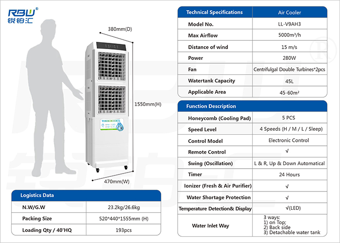 What truly sets the V9AH3 apart is its exceptional cost-effectiveness. Despite offering performance that rivals high-end cooling systems, the V9AH3 is priced competitively, making it accessible to a wide range of clients. Its low operating costs, combined with minimal maintenance requirements, ensure a quick return on investment, making it an ideal choice for businesses looking to reduce overheads without compromising on comfort. For regions with hot and dry climates, where traditional cooling solutions often fall short, the V9AH3 is a tailor-made solution that delivers powerful, efficient cooling at a fraction of the cost .