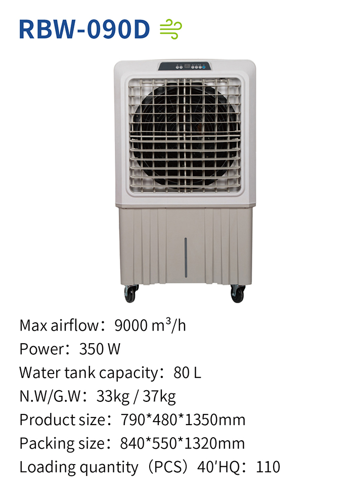 A: It’s built for high-power performance!Such as the model RBW-090D: it equipped with an upgraded motor and optimized fan blade structure, our industrial air cooler has ultra-strong wind power 350W with long air supply distance and wide coverage 9000M3/H. It quickly dissipates heat in large industrial spaces like workshops, warehouses and manufacturing plants, effectively relieving stuffiness and creating a comfortable working environment for your production team, even in the hottest seasons.