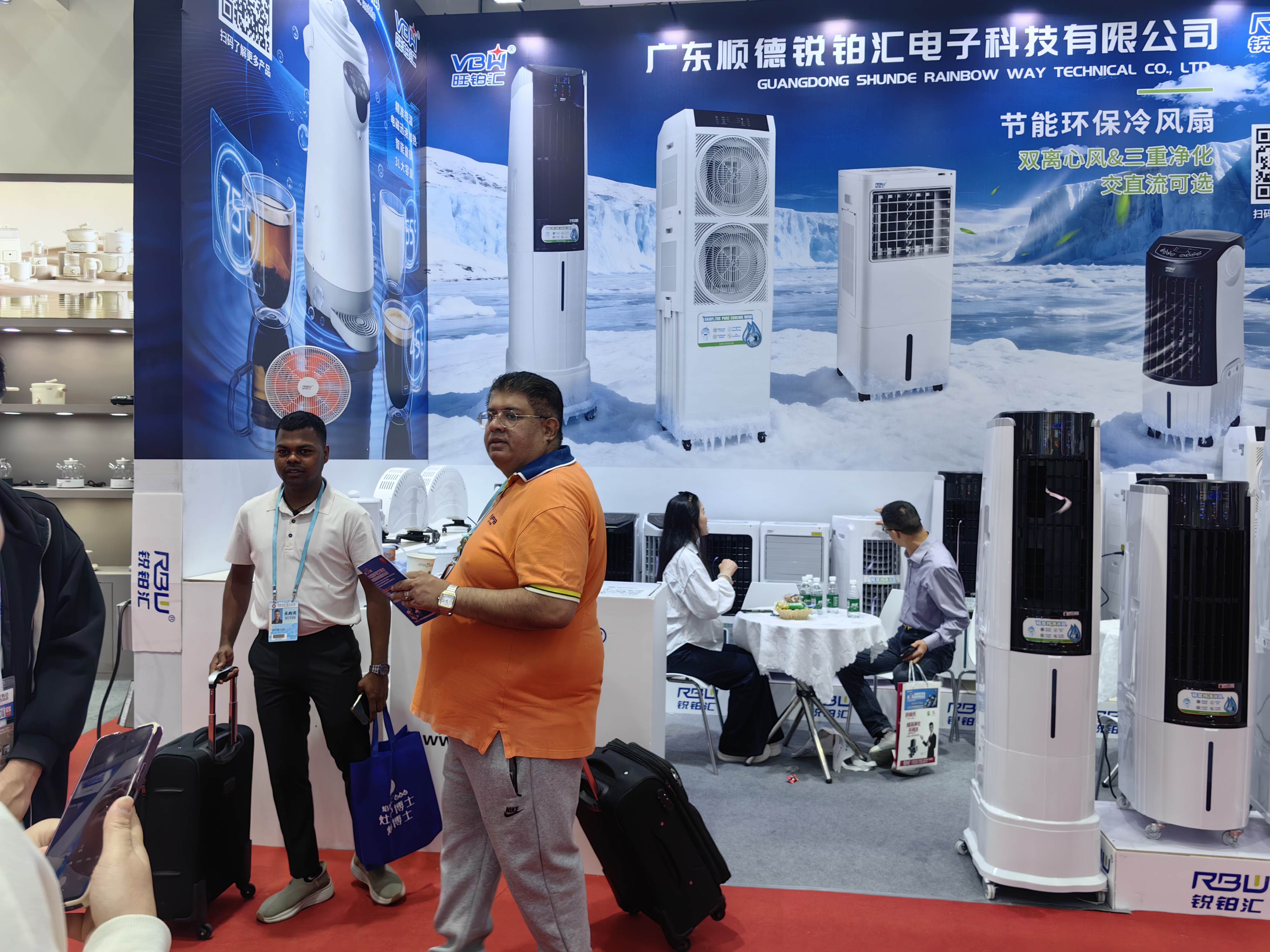 Our booth attracted a steady stream of domestic and international buyers, thanks to our featured products: the energy-saving and environmentally friendly air cooler, high-performance heaters, and the innovative small-molecule water bottle. Among them, the air cooler stood out with its advanced dual centrifugal fan system, triple purification technology, and flexible AC/DC options, drawing particular interest from visitors.
